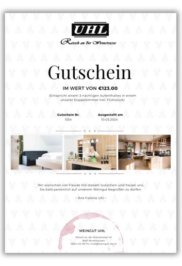 Gutscheine direkt am Weingut für sämtliche Produkte und Dienstleistungen einlösbar