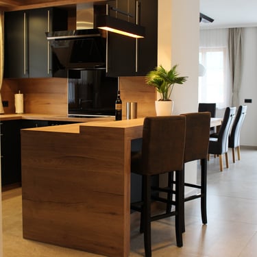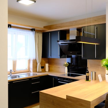 Stilvolle und große Wohneinheit mit voll eingerichteter Küche, zwei separaten Schlafzimmern und großer Sonnenterrasse.