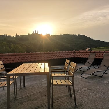 Unser Betrieb ist umgeben von Weingärten und Wiesen. Entspannen Sie auf unserer Liegewiese mit Hängematten oder auf unseren Sonnenstühlen. Entdecken Sie die Südsteirische Weinstraße zu Fuß oder mit dem Rad über einen der vielen Wander- bzw. Radwege, die direkt an unserem Weingut vorbeilaufen.